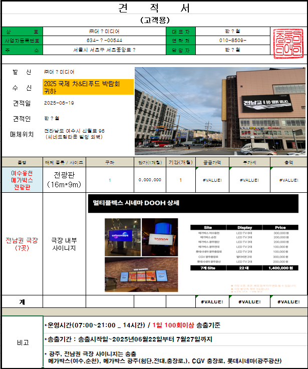공중파 방송 및 그 외 추가로 광주,전남 (야외 전광판 및 극장 내부) 광고를 실시 합니다.